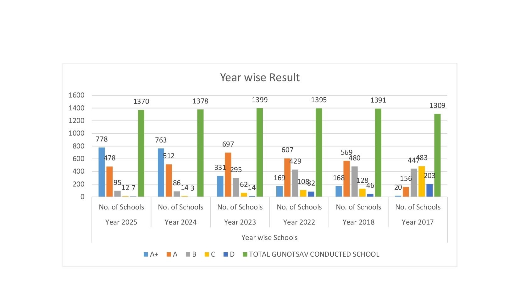 | TOTAL GUNOTSAV CONDUCTED SCHOOL | 1370 | 1378 | 1399 | 1395 | 1391 | 1309 | ||||||