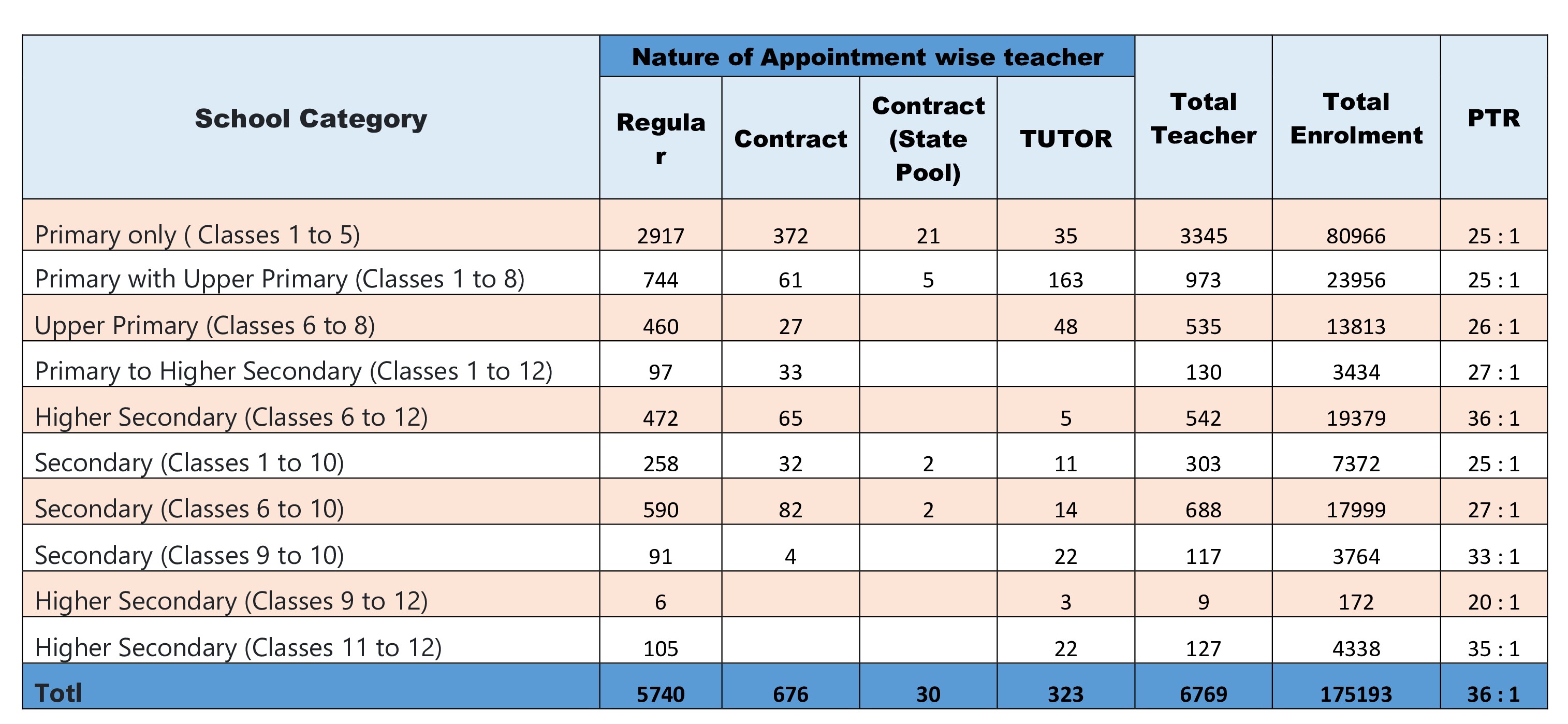 | Upper Primary to Sr. Secondary (Classes 6 to 12) | 28 | 1 | 2 | 0 | 0 | 0 | 0 | 31 |