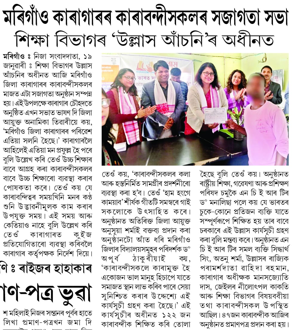 এই শুভ প্ৰচেষ্টাৰ বাবে জিলা শিক্ষা বিভাগৰ লগত জড়িত সকলোলৈ মোৰ আন্তৰিক শুভেচ্ছা জ্ঞাপন কৰিলোঁ।